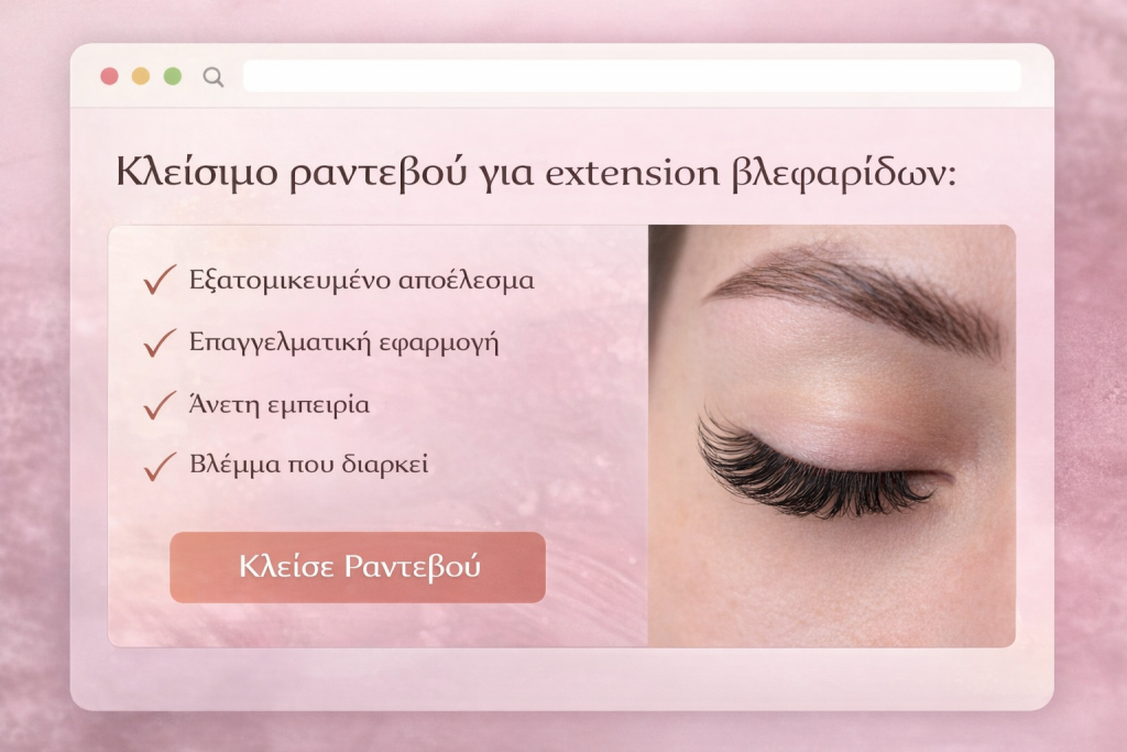 Το κλείσιμο ραντεβού για extension βλεφαρίδων δεν είναι απλώς μια ημερομηνία στο ημερολόγιο. Είναι η αρχή μιας εμπειρίας που πρέπει να είναι: